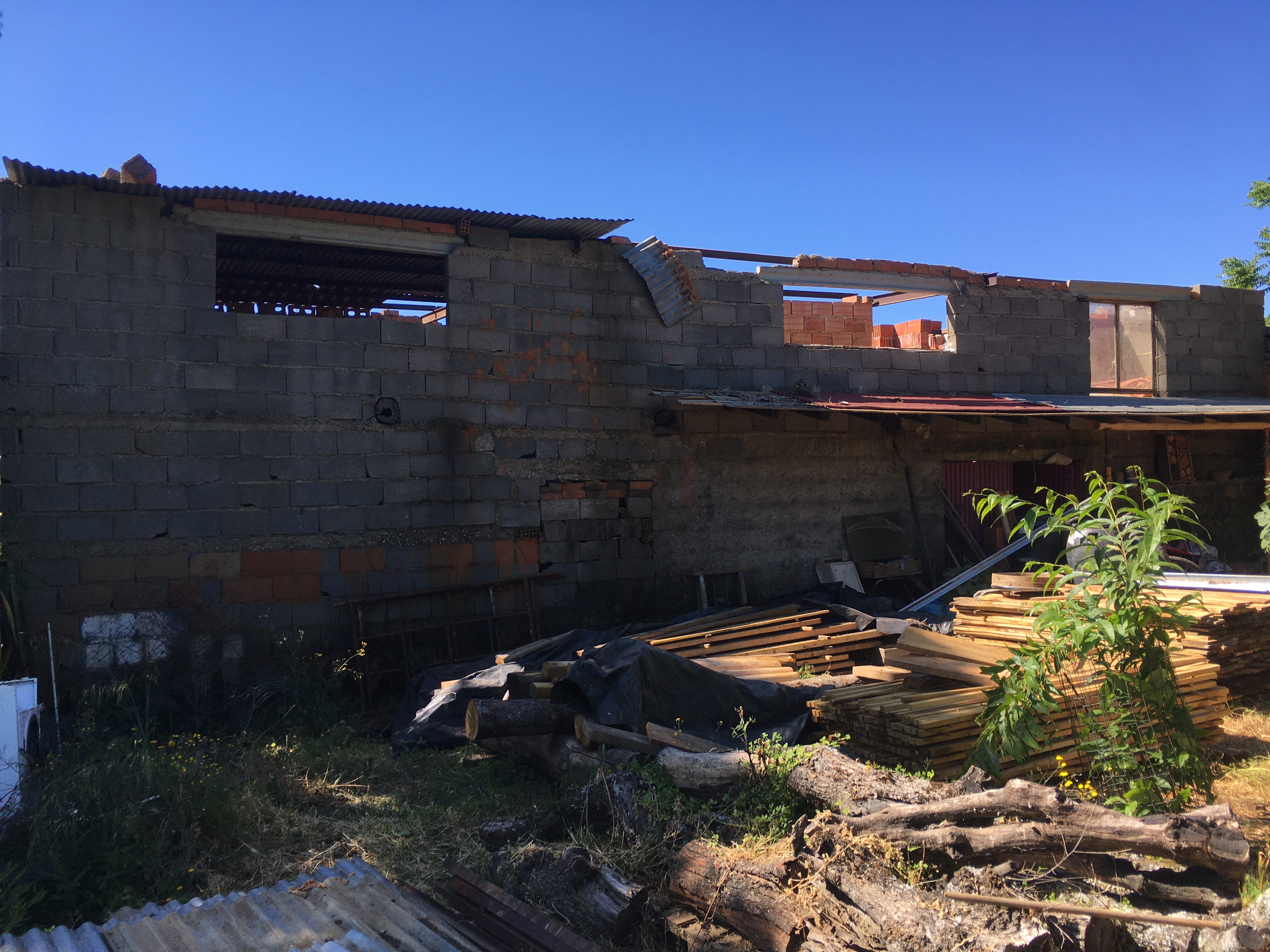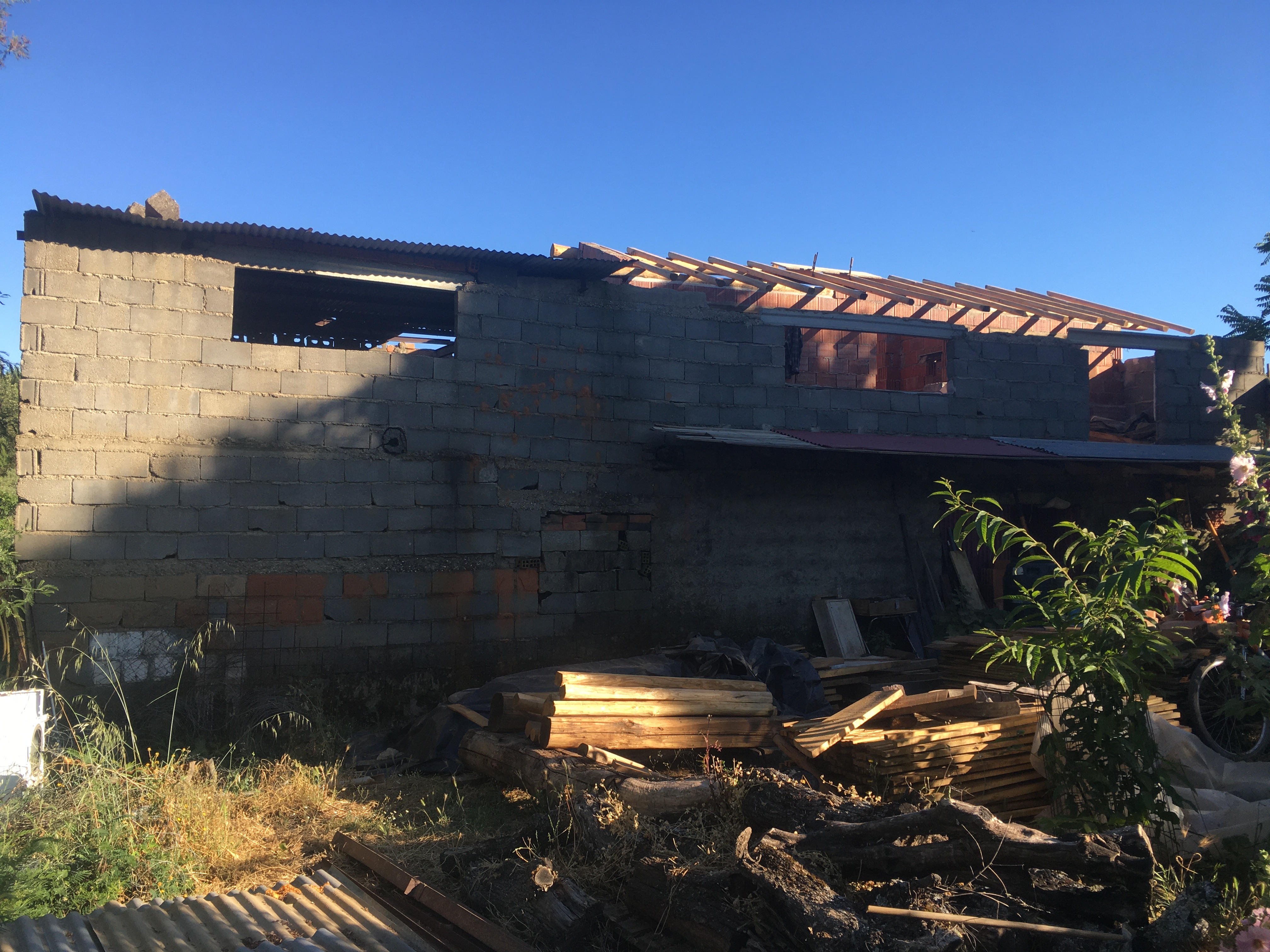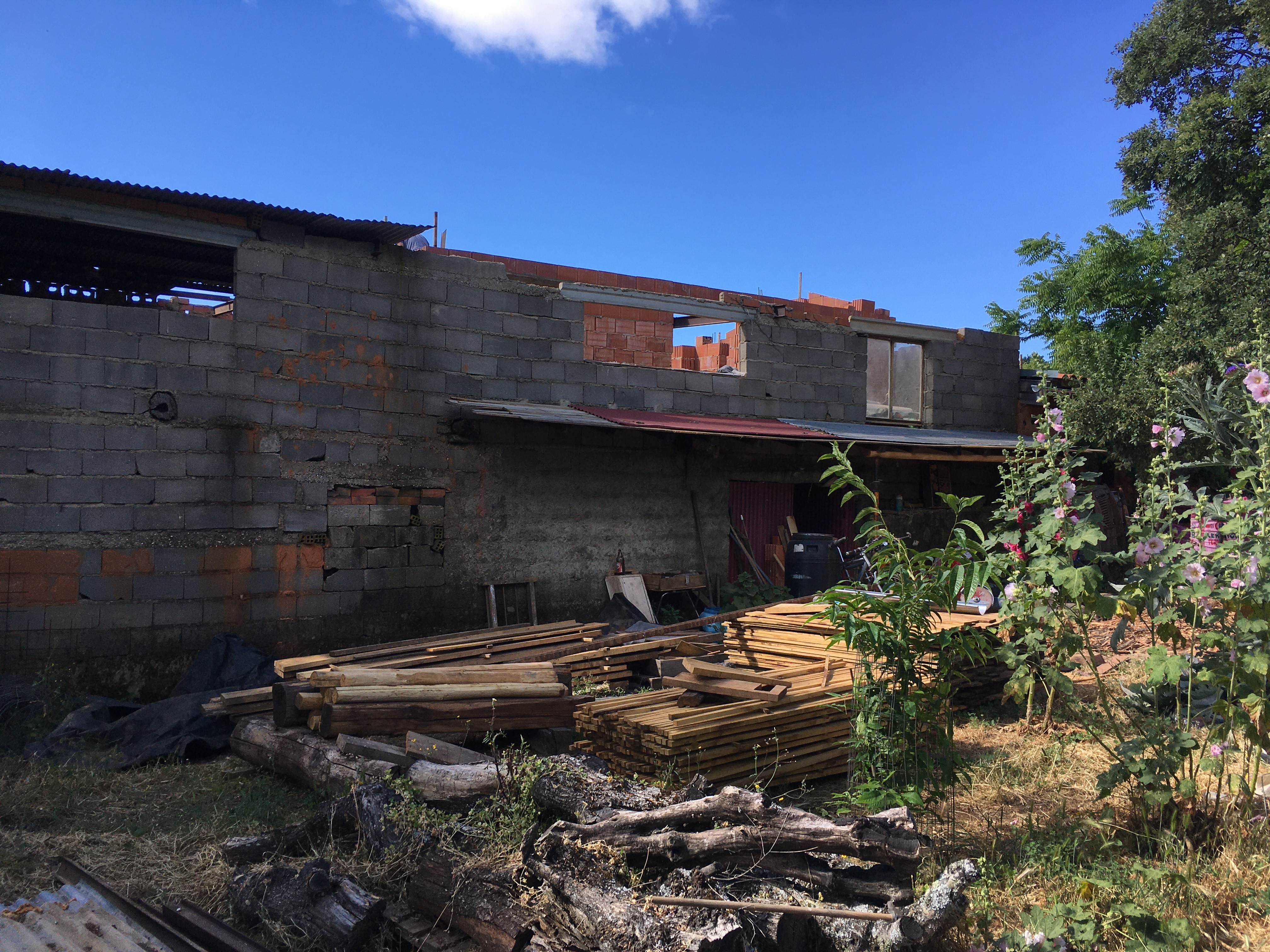 Innen fehlt noch allerhand. Der Putz, die Treppe, Kabel etc.. Doch wir haben ein Dach, welches dicht ist und Wände mit Fenstern, die Licht rein und die Wintertemperaturen draußen lassen. Für die nächsten Wochen wird es daher sicher erst einmal so bleiben. Schließlich muss das Geld nicht nur dafür auch erst einmal verdient werden.