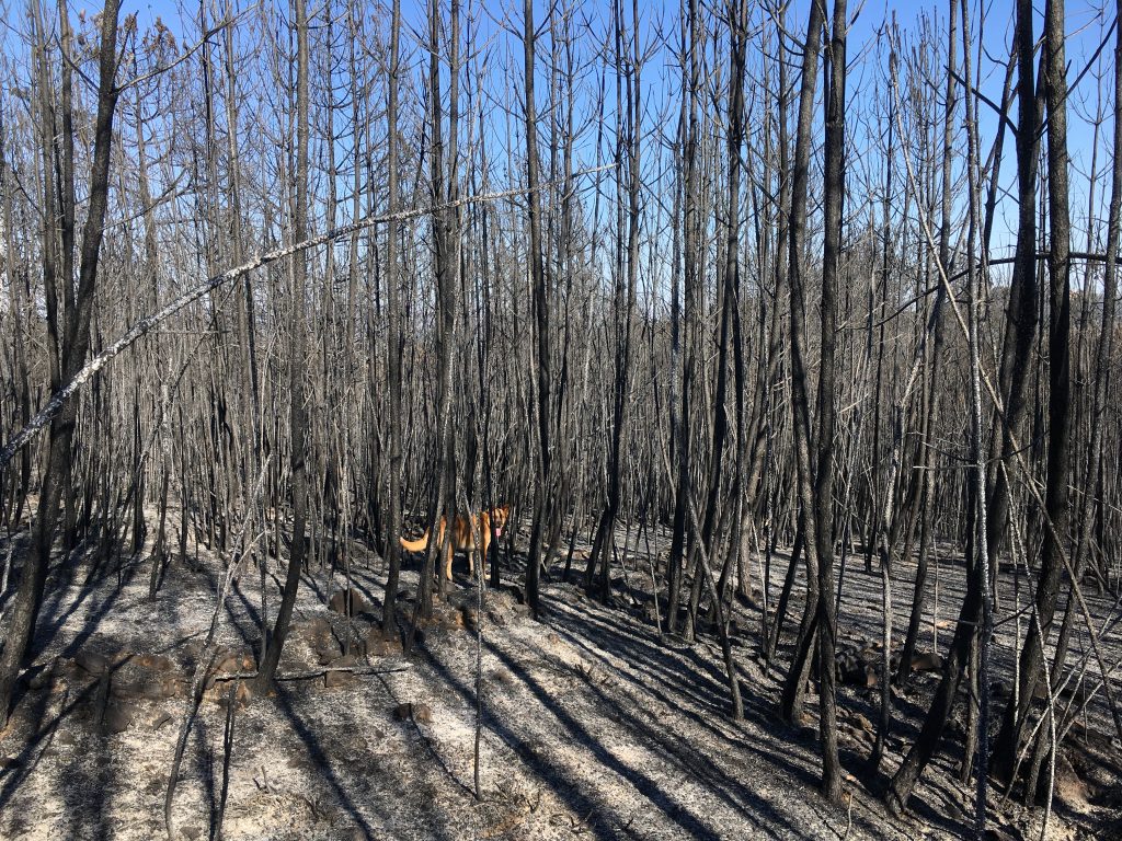 Es sind nun bald sechs Monate, seit das Feuer den Wald um uns herum in die Kulisse eines Katastrophenfilms verwandelt hat. Aus schwarzen Berghängen wurde braune und zwischen den toten Stämmen haben sich die ersten Pflanzen durchgekämpft. Unsere Pläne und Ideen, unser Umfeld neu zu begrünen und mit einem Mischwald zu bepflanzen, haben sich inzwischen