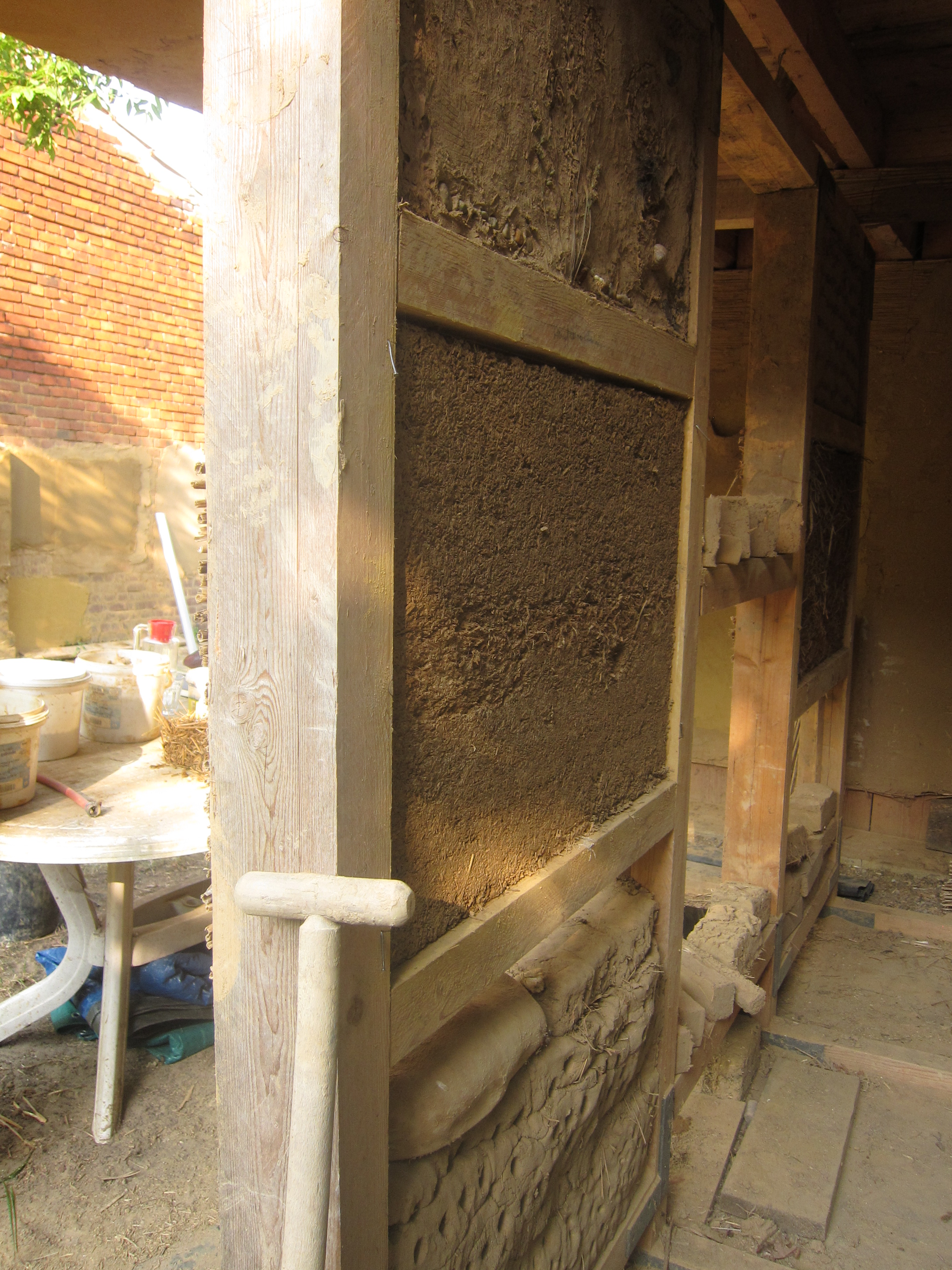 Aunque no podíamos ajustarnos a las fechas de los seminarios que tienen programados para este año, (…) nos dio la alternativa de una visita práctica. Cinco horas bien aprovechadas donde vimos soluciones para revocar ladrillo, madera, afinar el acabado de las esquinas, levantar paredes de estructura ligera con paja y barbotina, trucos para esconder tubos de fontanería o electricidad y más posibilidades de acabados impresionantes con pinturas de arcillas. Qué maravilla volver a oler la tierra mojada y reencontrarse con buenos amigos. Gracias Javi por apuntarte a la aventura.