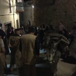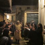 Sobald es Dunkel wird, beginnt der Umzug durch das Dorf. Allen voran der Camuña, behangen mit Glocken. Ihm folgen die Frauen und Männer des Dorfes, die Capazeras und Capazeros, in Ihrer Tracht. Auch ein Esel ist dabei, der die Capazetas trägt, die Scheiben, die bei den antiken Ölmühlen beim Pressen als Zwischenlage zwischen die Olivenmaische gelegt wurden. Wärend die Frauen singen und tanzen, geht es nun durch die Gassen von Weinkeller zu Weinkeller der Leute. Überall werden Wein und Kleinigkeiten an Essen gereicht.