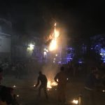 Nach ungefähr zwei Stunden gelangt der Umzug dann auf den Markt, auf dem im Vorfeld ein Eichenstamm aufgestellt wurde. Angeheizt duch den Wein und die gute Stimmung, zünden die Capazeros nun die Capazetas am Feuer an und versuchen, sie so auf die Eiche zu werfen, dass sie daran brennend hängen bleiben.