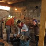 Lo divertido es que además de la párte técnica, tiene una fase de la obra más manual que nos encantó: ¡la parte de los revoques! con todo lo que eso conlleva: muscar tierra arcilllosa de la zona, hacer las pruebas, mezclar colores, tierras, texturas…como el tiempo nos pisa los talones y el frio se nos mete en lo huesos, este invierno la empezaremos a usar sin acabar esta bonita fase y en primavera disfrutaremos de lo lindo con las creaciones.