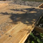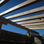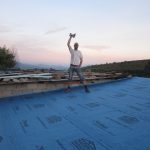 Llegó el otoño…y conseguimos cerrar el tejado justo antes de las primeras lluvias. Faltan las tejas, pero la madera y el aislante han quedado protegidos.