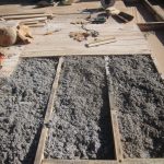 Wenn das ganze Haus eine solche Basis hat, kommt der sichtbare Fußboden darauf. Den Teil für die Küche haben wir aus einer alten Ziegelbrennerei organisiert ( Alte Technik / Técnicas antiguas). Hier mal erste Tetrisversuche.