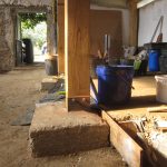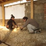 El suelo ha sido un trabajo mucho más duro de lo que pensábamos. Hemos igualado el desnivel (en algunos puntos de 20cm) con piedra y echado 10 cm de hormigón de cal hidraulica nhl-5, para proteger de la humedad.