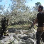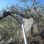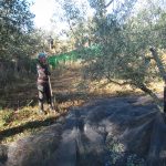 Para recolectar hay varios métodos. Nosotros hemos probado los manuales y nos hemos dado cuenta rápido que vamos muy despacio . Hemos investigado y preguntando a unos y otros hemos conseguido un vibrador mecánico de segunda mano y las enseñanzas de Javier, un vecino del pueblo con 20 años de experiencia…y que tiene más de 3000 olivos.