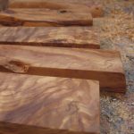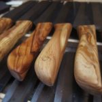 Tenemos la suerte que el carpintero del pueblo está muy bien equipado y cuenta con una máquina laser para grabar en distintos materiales. Así se ven los últimos encargos en olivo.