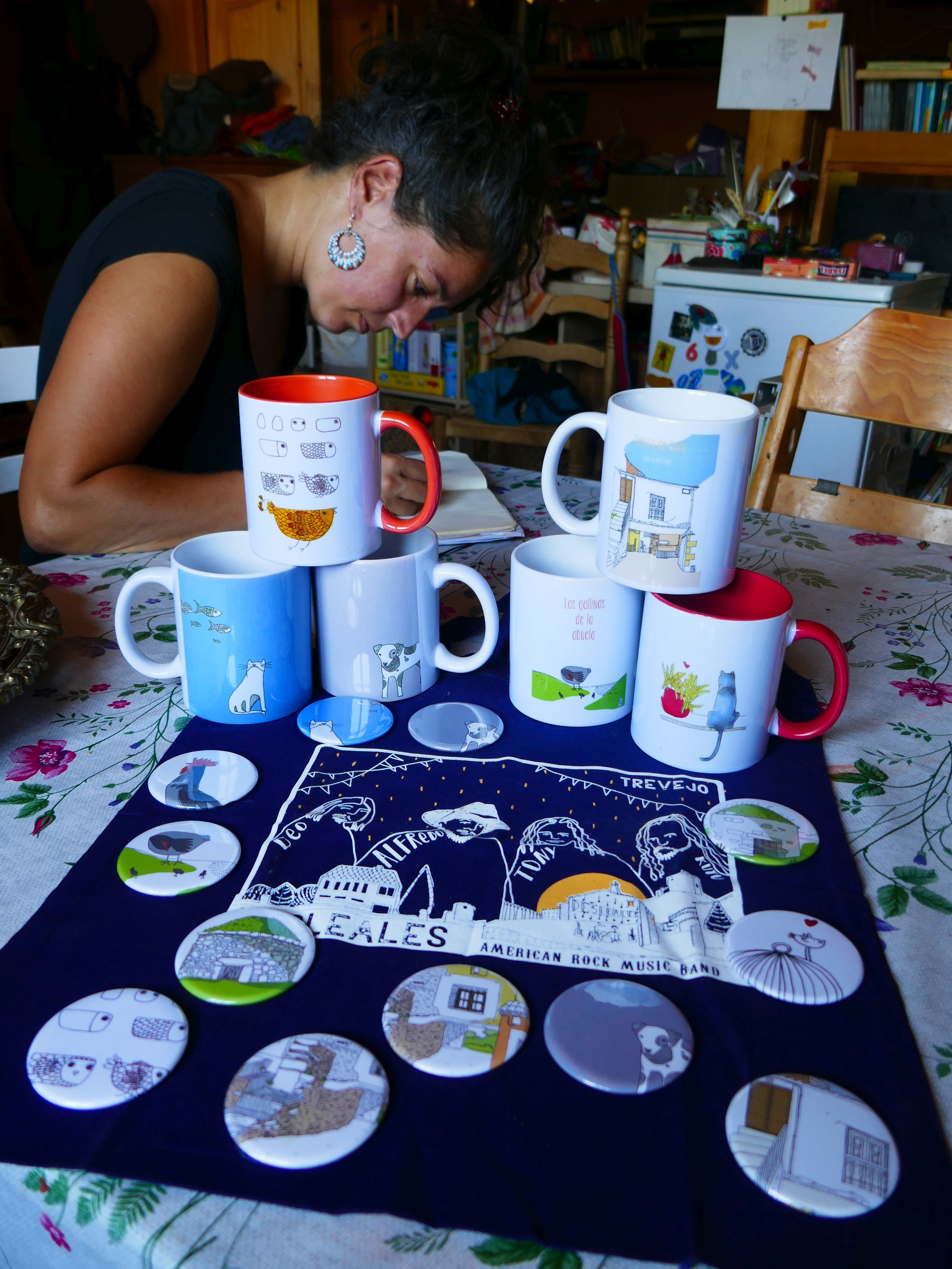 Ama hat einen Weg gefunden, um ihre Illustrationen zu vermarkten. Neben den Promotionen für Events oder Lokalen gibt es Ihre Grafiken jetzt auf Tassen, Pins, Beuteln, Kühlschrankmagneten oder Flaschenöffnern.