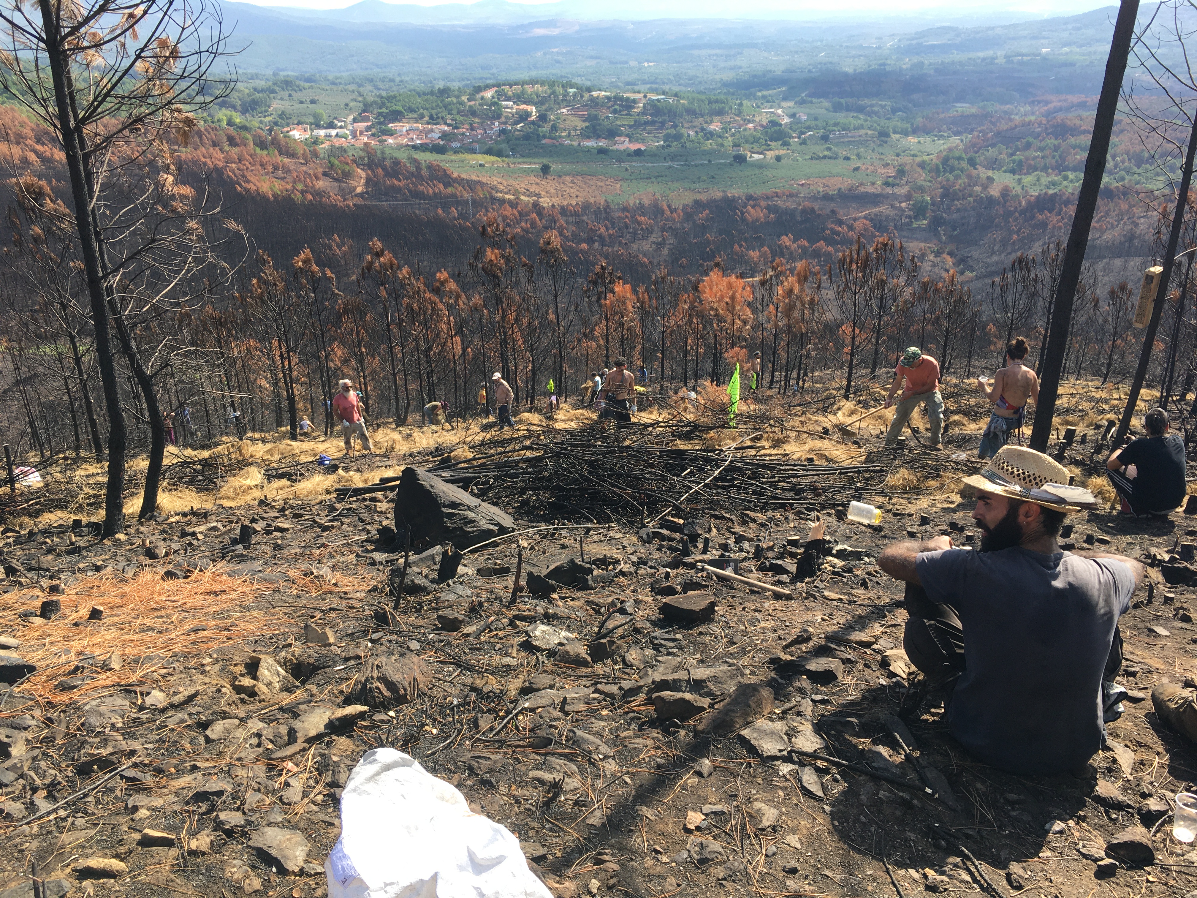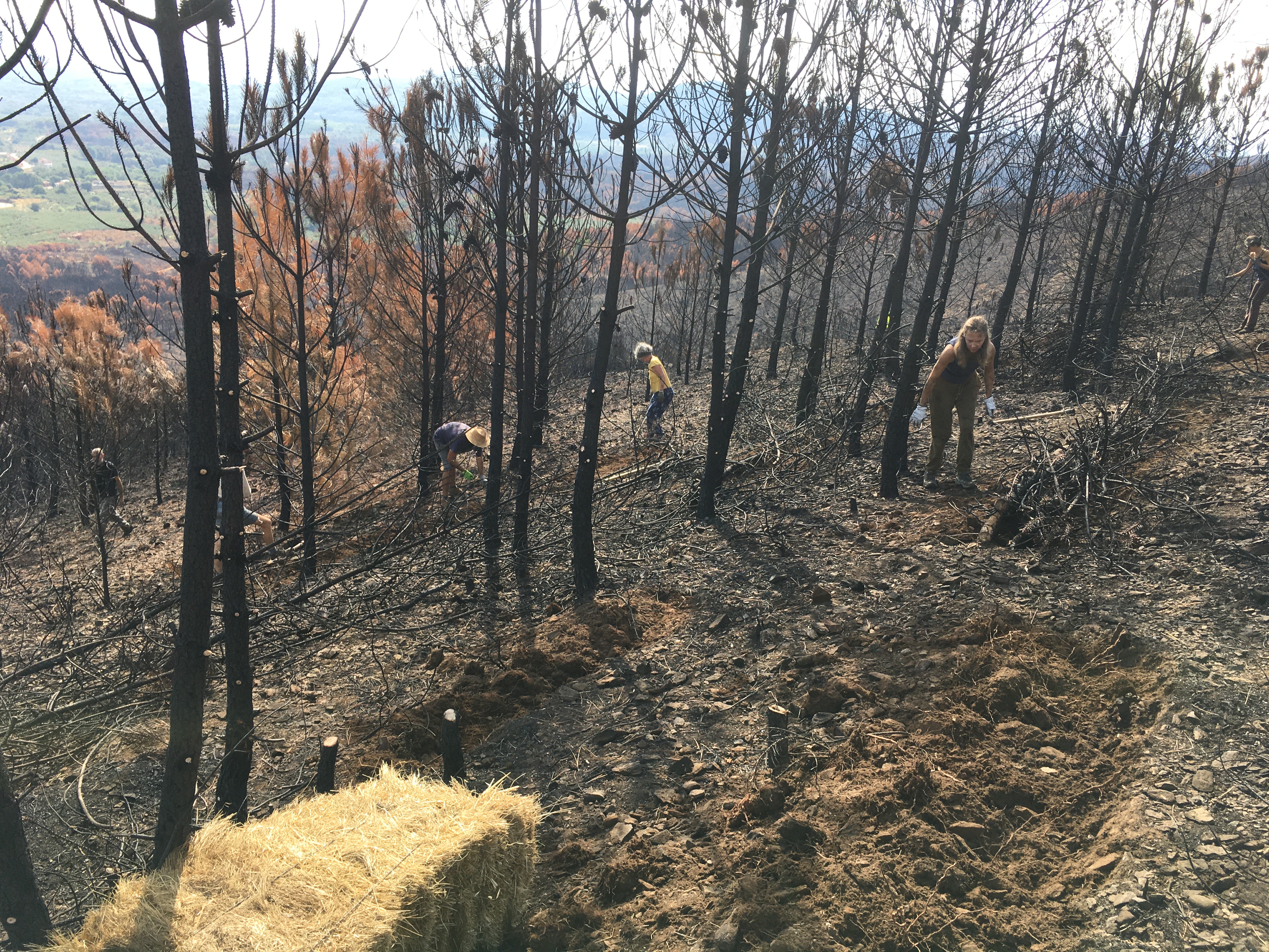Wir haben heute zusammen mit Vetonia, einem regionalen Umweltverein und einigen Leuten aus dem Dorf einen ersten Abschnitt der abgebrannten Waldfläche umgearbeitet. Leider im Moment nur ein Tropfen auf dem heißen Stein, aber dennoch ein schöner Anfang.